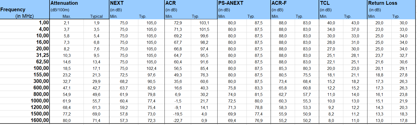 - Exceeds Category 7A in terms of ACR and Frequency Range